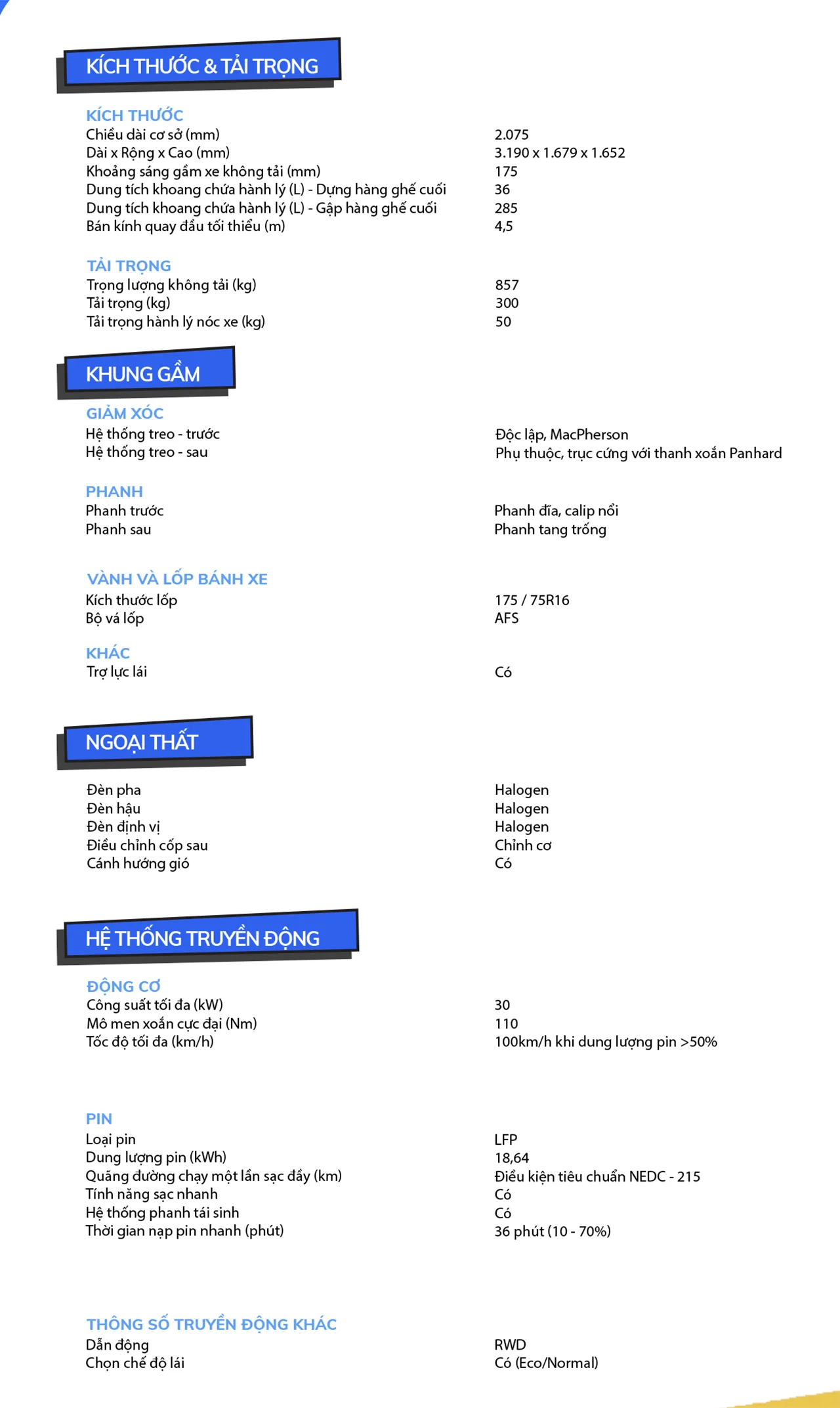 VF3 được trang bị pin dung lượng 18,64 kWh, cho khả năng di chuyển thực tế khoảng 180–200 km/lần sạc trong điều kiện đi phố. Đây là mức quãng đường lý tưởng cho: